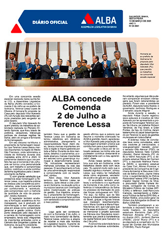 ALBA entrega Comenda 2 de Julho a Terence Lessa nesta quinta-feira