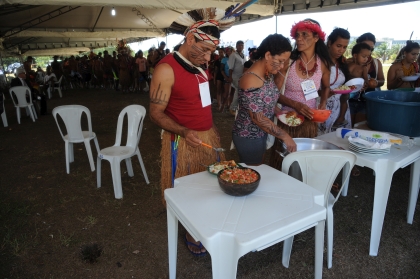 Coronel e Eleusa se reúnem com os índios acampados na ALBA