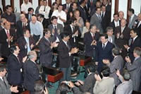 Ele se declarou honrado com o quorum obtido na sessão especial, de 44 deputados, "suficiente para votação de emenda constitucional". Presentes 11 ex-deputados estaduais baianos, cinco ex-deputados federais, conselheiros das Cortes de Contas, prefeitos e vereadores de Salvador. De Goiás vieram cerca de 80 pessoas. Os três senadores (além de um do Tocantins), 26 deputados estaduais, 11 federais, 28 prefeitos, oito vereadores de Goiânia, conselheiros do TCE e TCM, secretários de Estado, empresários e os presidentes da OAB, secção Goiás, da Federação das Indústrias e da Associação Comercial, o secretário geral da CNI, cinco pastores presidentes de congregações evangélicas e um ex-vice governador do estado.
