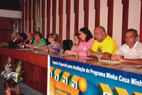 Além da garantia de que as casas serão entregues, e com prioridade para os que recebem até três salários mínimos, os participantes da sessão especial de ontem tiveram a confirmação de mais uma boa notícia: a partir de agora, quem receber habitação pelo programa vai pagar somente 5% do salário mínimo como prestação. A informação é de Evaniza Rodrigues, assessora da Caixa Econômica Federal, ao falar em nome do presidente Jorge Hereda. Mas este benefício vale apenas para quem receber a casa e nela morar. Caso o imóvel seja repassado a terceiros, as vantagens acabam.