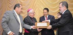 O bispo iniciou o agradecimento num português perfeito e quase sem sotaque, pedindo licença para quebrar o protocolo – como fez o papa Francisco – e agradeceu penhoradamente a honraria aos "dignos deputados estaduais que confiaram em mim", ao passo em que revelou que nunca se imaginou recebendo essa homenagem compartilhando a emoção com os amigos presentes e com todos os itabunenses.