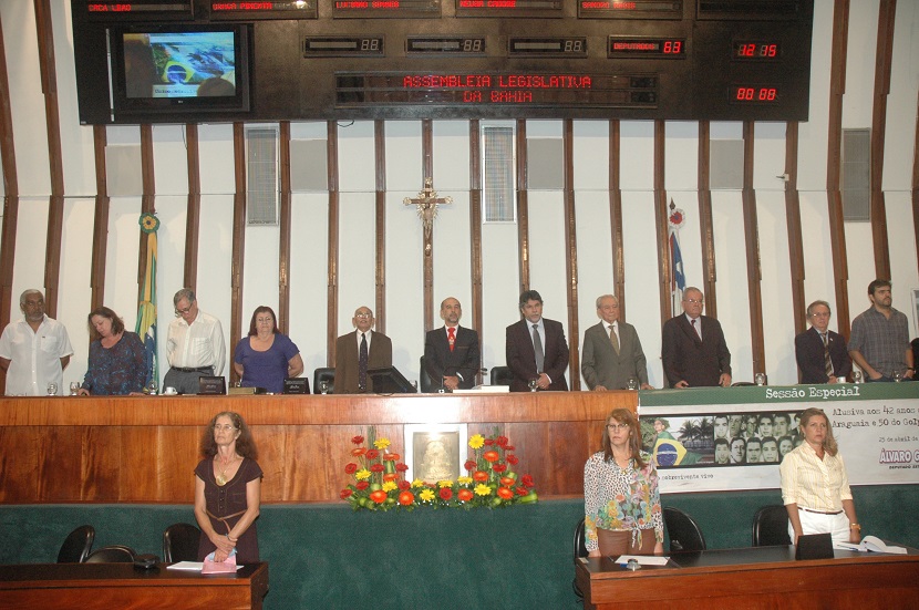 Compuseram a mesa da solenidade o presidente da Comissão da Verdade da AL, deputado Marcelino Galo (PT); o deputado federal Daniel Almeida (PC do B/BA); o presidente estadual da Central dos Trabalhadores e Trabalhadoras do Brasil (CTB), Aurino Pedreira; o diretor do Centro Brasileiro de Solidariedade aos Povos e Luta pela Paz, Antônio Barreto; o presidente estadual da União da Juventude Socialista (UJV), Vladimir Meira; além de Diva Santana, representante do Grupo Tortura Nunca Mais; Carlos Valadares, representante do Comitê estadual do PC do B; Osvaldo Bertolino, membro da Fundação Maurício Grabois; e Joviniano Neto, do Comitê Baiano pela Verdade.