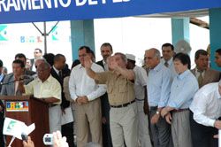 Ferraz com Souto, Lula e outras autoridades na colônia de pescadores do Rio Vermelho