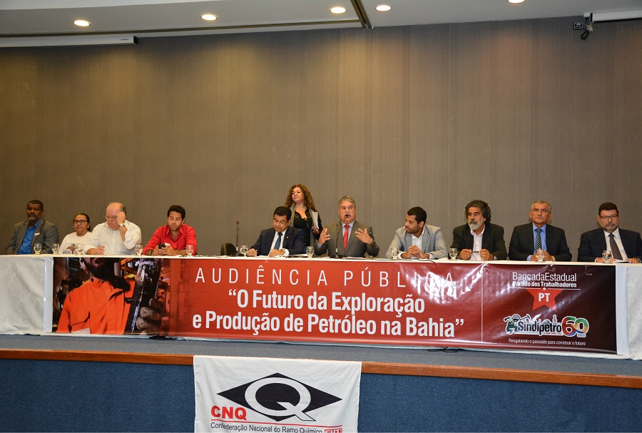 A Assembleia Legislativa recebeu, em audiência pública realizada na manhã dessa segunda-feira, petroleiros da Bahia. A audiência pública, promovida pela Bancada do PT na AL com o tema “O futuro da exploração e produção de petróleo na Bahia”, teve como objetivo mobilizar parlamentares e sociedade civil para exigir mais investimentos da estatal para o estado e estimular a defesa pela manutenção da empresa na Bahia, a continuidade da exploração dos campos maduros, assim como pesquisas para novas descobertas e prospecções em terra e mar para o desenvolvimento da empresa e do Estado.