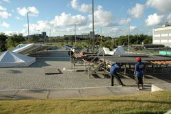 O palanque e as coberturas estavam sendo preparados desde ontem no estacionamento