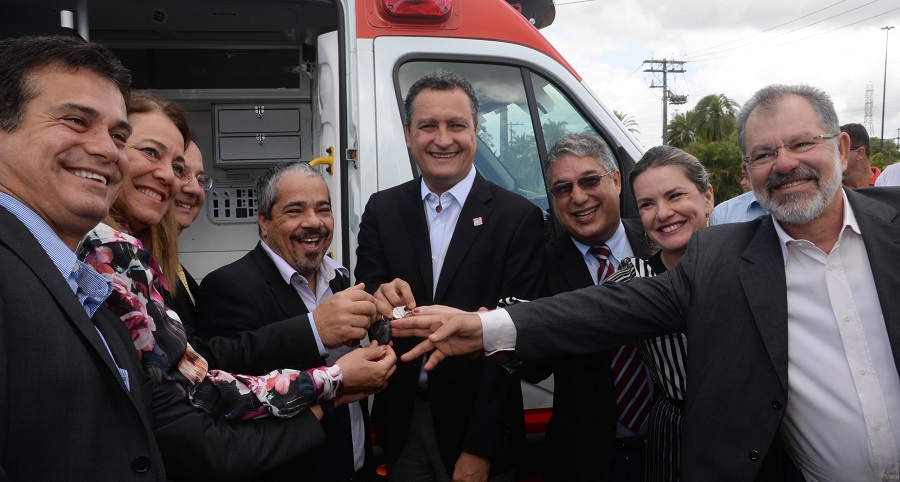 O presidente da Assembleia Legislativa da Bahia, deputado Marcelo Nilo participou ontem da solenidade de entrega de dez ambulâncias avançadas do Serviço de Atendimento Móvel de Urgência (Samu 192), utilizadas para transporte de pacientes com quadros clínicos de maior complexidade. Os veículos foram entregues pelo governador Rui Costa em solenidade realizada no pátio da Secretaria da Saúde (Sesab), e serão destinados às prefeituras de Eunápolis, Guanambi, Ilhéus, Itabuna, Paulo Afonso, Santo Antônio de Jesus, Senhor do Bonfim, Vitória da Conquista, Lauro de Freitas e Itapetinga.