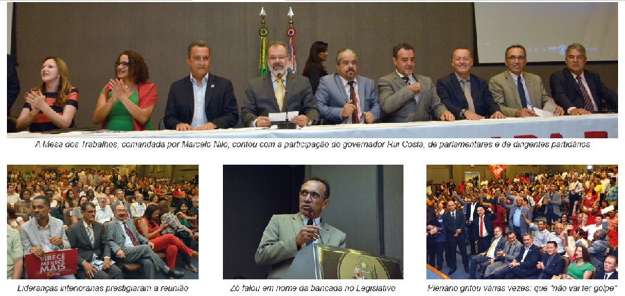 O deputado Zó falou em nome da bancada do PC do B na Assembleia. Ele disse que tem 30 anos de militância no partido e que continua nas mesmas trincheiras de lutas pelo interesse dos estudantes, trabalhadores e para que o Brasil siga em frente no caminho do progresso que tem se verificado nos últimos anos. “Estamos aqui por convicção, por ideologia e a luta que se apresenta é contra o golpe que as elites querem praticar contra o povo”, afirmou.
