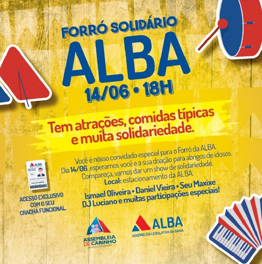 A tradicional festa de São João da Assembleia Legislativa, que será realizada na quarta-feira, dia 14, terá convidados muito especiais este ano. Pela primeira vez, o evento terá uma lado social, através do programa Assembleia de Carinho, coordenado por Eleusa Coronel, esposa do presidente da Casa, deputado Angelo Coronel (PSD). Por isso, idosos cuidados por instituições que habitualmente não comemoram o São João foram convidados para participar da festa, no estacionamento atrás do Edifício Senador Jutahy Magalhães.