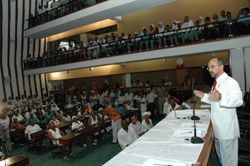 Vestido de branco, como quase todos presentes, Álvaro defendeu os direitos das religiões...