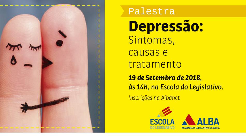 Na próxima quarta, dia 19, a Escola do Legislativo promoverá palestra sobre os sintomas, as causas e tratamentos da depressão. O debate tem como objetivo ampliar as informações a respeito do transtorno e será realizado pela psicóloga Andrea Santos, em conjunto com a graduanda de psicologia Laiana Guimarães, às 14h, na sala 3 da Escola do Legislativo.
