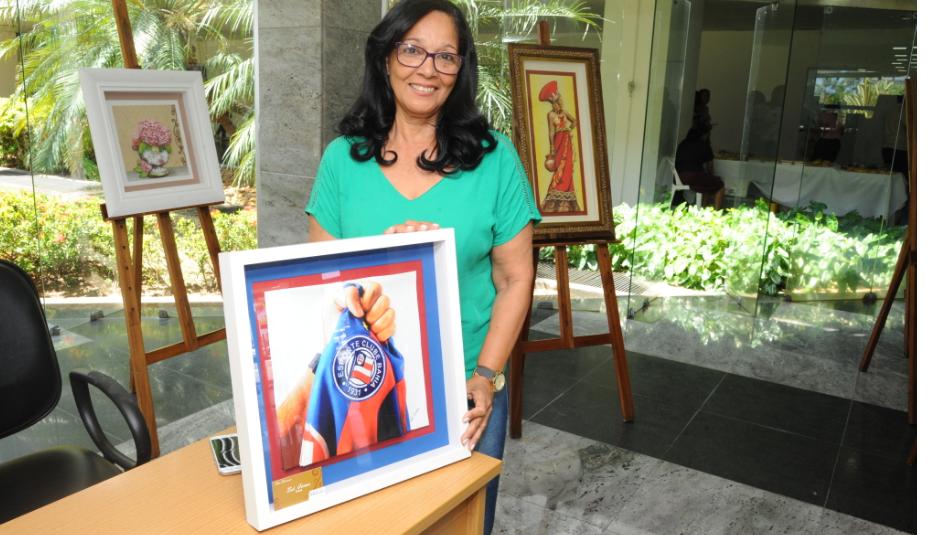 A artista contou ainda que começou a utilizar a modalidade da arte francesa quando se aposentou há mais de dez anos e, por curiosidade, resolveu aprofundar seu interesse. Os quadros dela em exposição retratam santos católicos, orixás, temas afro-baianos e a natureza de pássaros.