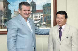 O presidente interino da Assembléia Legislativa, deputado Angelo Coronel (PL), recebeu na tarde de ontem a visita do cônsul-geral da República de El Salvador, Vidal Sorto Rubio. A visita do cônsul à presidência é a primeira ocorrida na gestão de Coronel, que assumiu o comando da Casa na última quinta-feira, por causa da viagem do presidente Clóvis Ferraz.