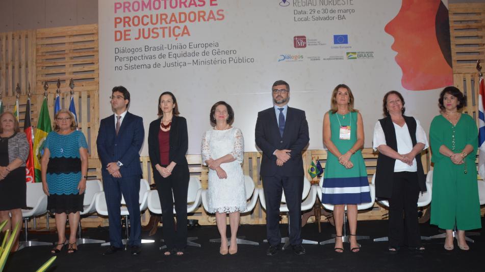O encontro contou com a participação da presidente do Conselho Nacional do Ministério Público (CNMP) e procuradora-geral da República, Raquel Dodge, e da procuradora-geral de Justiça do MP da Bahia, Ediene Lousado, dentre outras autoridades. Na pauta, a elaboração de diagnósticos para buscar a equidade feminina no Sistema de Justiça Brasileiro. O evento é organizado pela Presidência do CNMP, por meio da Secretaria de Direitos Humanos e Defesa Coletiva e da Comissão de Defesa dos Direitos Fundamentais em parceria com a Delegação da União Europeia no Brasil e com as Procuradorias-Gerais de Justiça dos Estados da Região Nordeste.