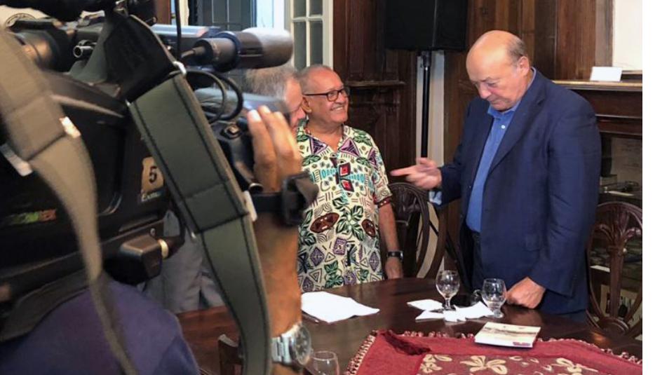 O presidente da Academia, Joaci Goes, abriu o evento e conversou com a repórter Samyle Fonseca sobre a obra “Alalá do Luaréu”, de Serra. O livro explora as linguagens de cordel, sertaneja e várias oratórias baianas, que são características do autor. “A linguagem sertaneja é muito bonita, o dialeto sertanejo é riquíssimo. Esse é um livro que reflete o mistério da vida de todos nós, com uma mensagem de esperança ao final”, disse o escritor e antropólogo.