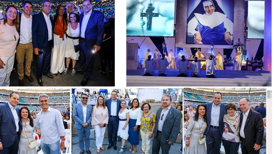 Acompanhado de sua esposa, Danda Leal, e de seus pais, Emerson e Lia, o chefe do Legislativo baiano esteve ao lado do Arcebispo Primaz do Brasil, Dom Murilo Krieger, da presidente das Obras Sociais, Maria Rita Lopes Pontes, do governador Rui Costa, do vice-governador João Leão, do prefeito de Salvador ACM Neto, dos senadores Otto Alencar, Jaques Wagner e Angelo Coronel, e de diversos deputados federais, na primeira celebração baiana depois que Irmã Dulce se tornou santa.