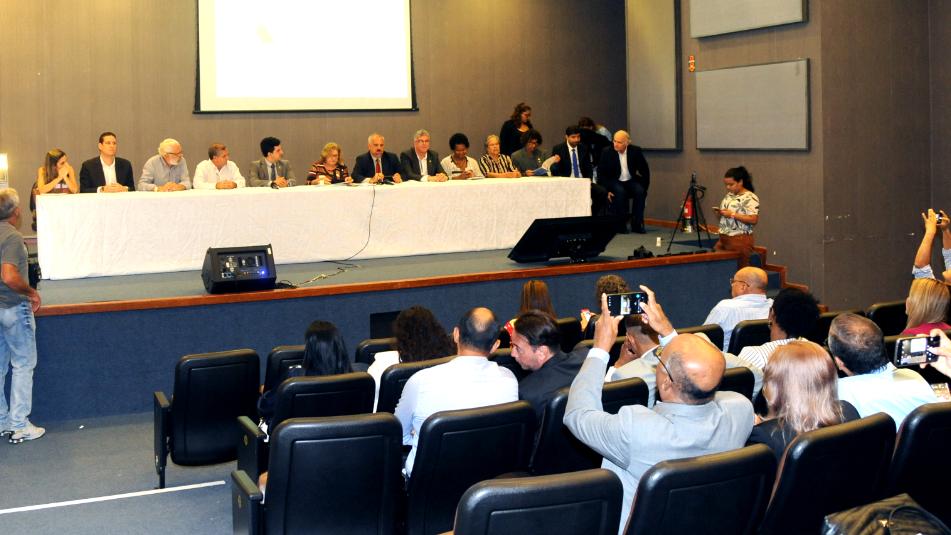 Representantes de 19 conselhos regionais de diversas categorias se reuniram na manhã desta segunda-feira (4), no Auditório Jorge Calmon, na Assembleia Legislativa da Bahia (ALBA), para protestar contra a Proposta de Emenda à Constituição (PEC) Federal 108/19, apresentada pelo Governo Federal, em tramitação na Câmara dos Deputados. O evento foi realizado pela Frente Parlamentar em Defesa das Cidades e das Engenharias e vai entregar documento aos presidentes da Câmara dos Deputados e do Senado Federal, alertando-os sobre os riscos da proposta e mostrando a posição contrária das entidades.