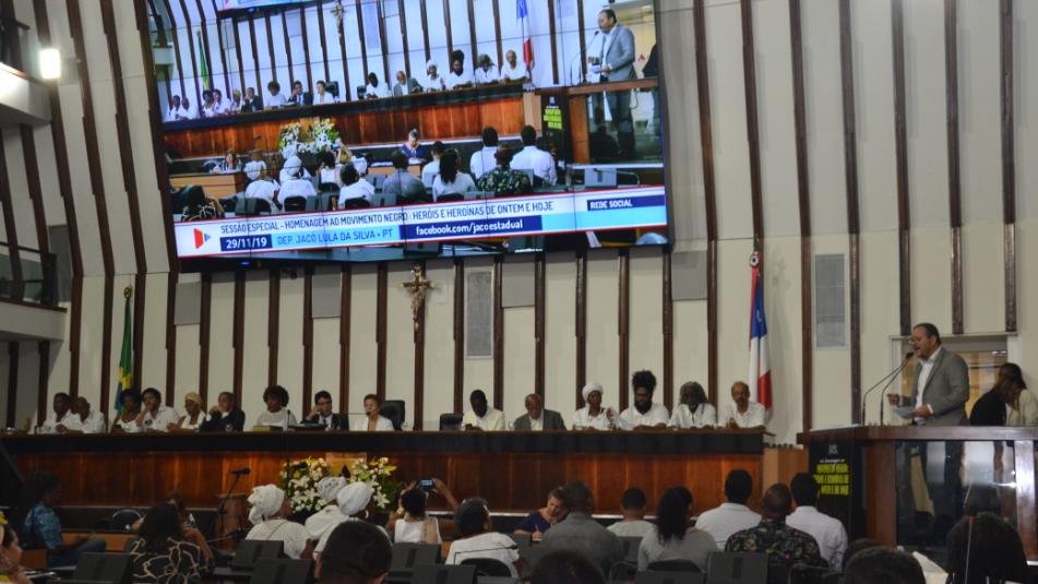 O plenário da Assembleia Legislativa da Bahia (ALBA) sediou, na manhã desta sexta-feira (29), a sessão especial em homenagem ao Movimento Negro: heróis e heroínas de ontem e de hoje. O evento integrou a programação do Novembro Negro e foi promovido pelo deputado Jacó Lula da Silva (PT).