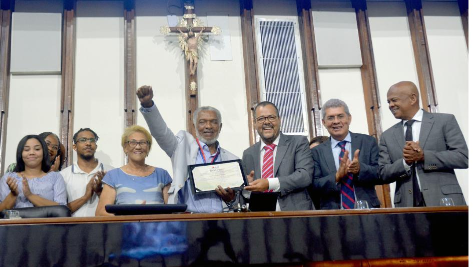 Há poucos dias da abertura oficial do Carnaval de Salvador, o samba ganhou destaque no Parlamento baiano. Por iniciativa do deputado Jacó Lula da Silva (PT), a Assembleia Legislativa concedeu, na manhã desta segunda-feira (17), a Comenda 2 de Julho ao cantor, compositor e sambista Nelson Rufino, em reconhecimento às contribuições do artista ao gênero musical. Em pronunciamento na tribuna de honra, o proponente da sessão especial ressaltou a importância das letras de Rufino para a história da Bahia e fortalecimento da autoestima da população negra, das mulheres e moradores de bairros populares.
