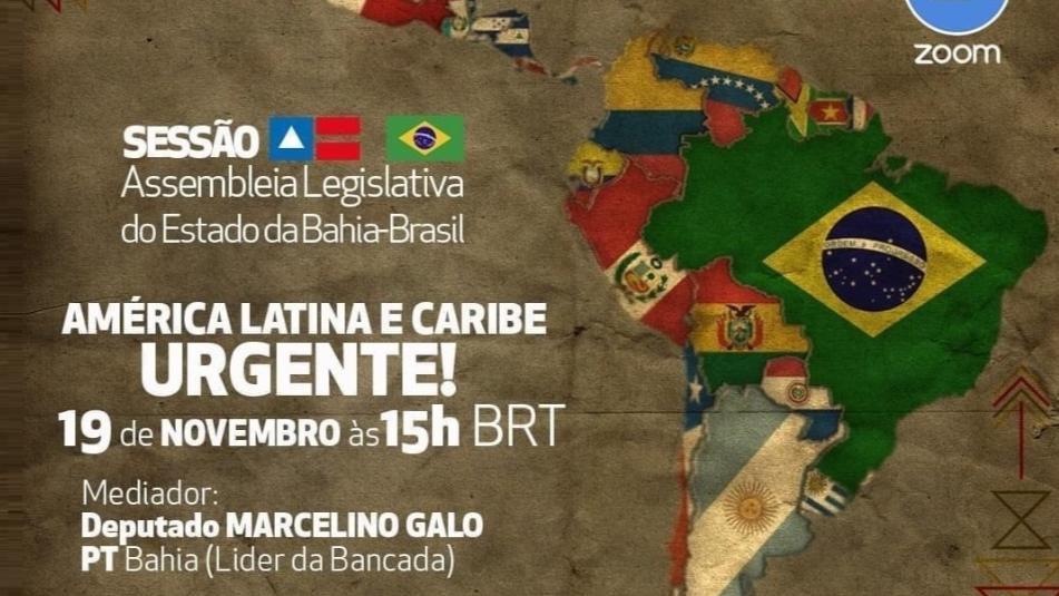 A Bancada do PT na Assembleia Legislativa da Bahia (ALBA) promove, nesta quinta-feira (19), a partir das 15h, um encontro remoto com representantes de entidades da América Latina e do Caribe, para debater a realidade política eleitoral e as questões sanitárias da pandemia nesses países. Pensado como sessão especial, o evento – intitulado “América Latina e Caribe Urgente!” – será realizado através de sala de reunião virtual da plataforma Zoom e transmitido pela Internet.