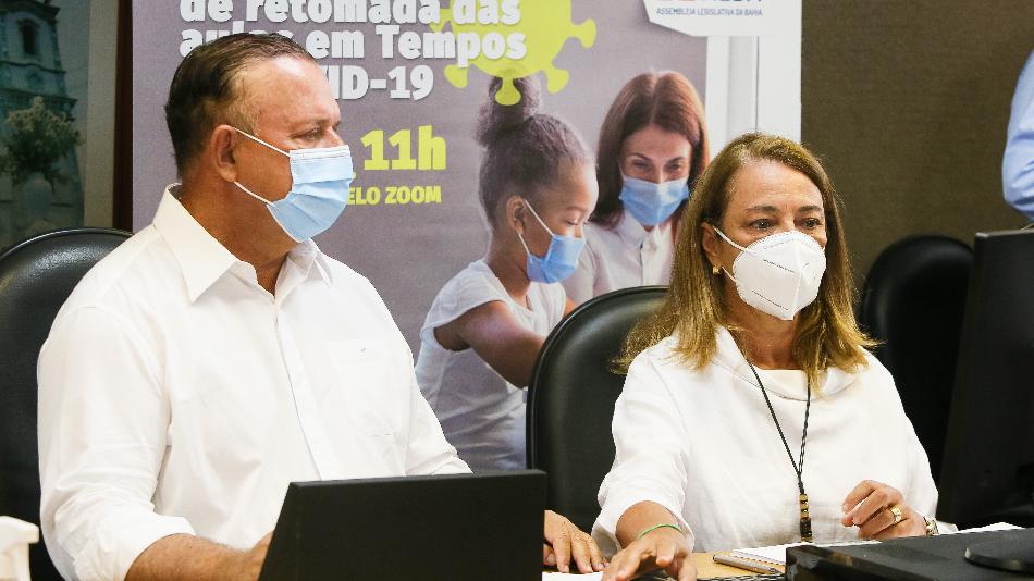 O presidente Adolfo Menezes (PSD) prestigiou a audiência pública que a Comissão de Educação realizou com as presenças dos secretários estadual e municipal de Educação, respectivamente, Jerônimo Rodrigues e Marcelo Oliveira, o secretário estadual da Saúde, Fábio Vilas-Boas, além do chefe da Defensoria Pública do Estado, Rafson Ximenes, técnicos da área pública e privada, para debater o retorno às aulas com segurança, dada à persistência da pandemia. A reunião foi articulada pela presidente do colegiado, deputada Fabíola Mansur (PSB), que elogiou o conteúdo elevado da discussão, registrando a unanimidade obtida em favor do retorno às aulas no menor prazo possível, mas seguramente não nesse momento. Ela e o presidente da ALBA estiveram presencialmente nos trabalhos.