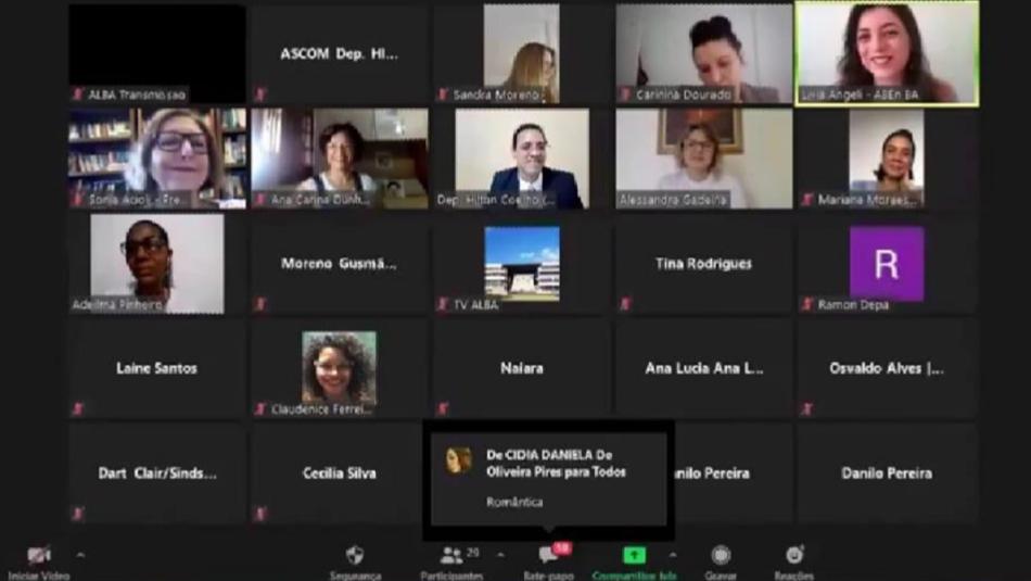 Aladilce Souza, enfermeira e ex-vereadora de Salvador; Ana Carina Monteiro, do conselho fiscal do Sindsaúde; Adeilma, tesoureira do Sindicato dos Técnicos em Enfermagem e outros diretores de movimentos populares fizeram pronunciamentos cobrando dos poderes Executivo e Legislativo mais políticas públicas em favor da categoria. As deputadas Olívia Santana (PC do B) e Fátima Nunes (PT) participaram da reunião remota e prometeram se empenhar para que as reivindicações do pessoal de enfermagem ganhem o apoio de mais parlamentares estaduais, da bancada federal e principalmente junto aos senadores baianos, que devem apreciar e votar o PL 2564/2020.