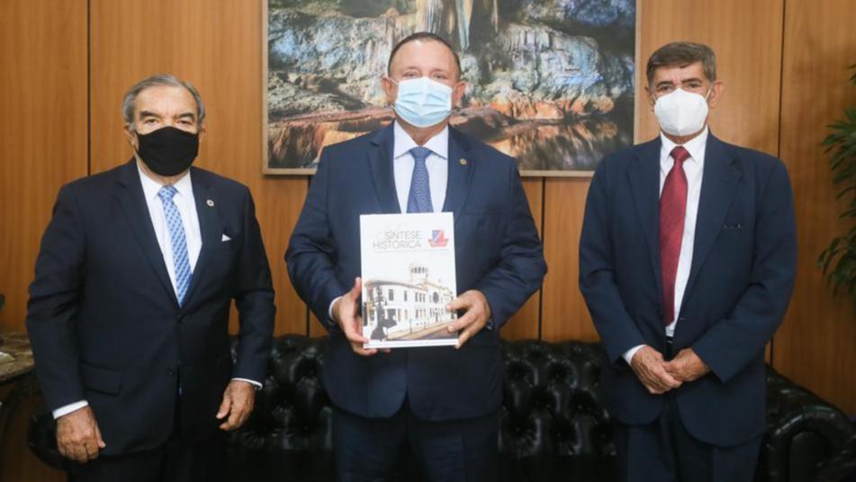 O presidente Adolfo Menezes recebeu visita de cortesia de diretores do Instituto Geográfico e Histórico da Bahia (IGHB), entidade conveniada com a Assembleia Legislativa, parceiro na produção e publicação de livros históricos através do programa editorial que o Legislativo executa. O presidente da instituição, Eduardo de Castro, e o secretário-geral, Newton Cleyde, conversaram com o deputado Adolfo Menezes durante 40 minutos sobre a conjuntura econômica e cultural da Bahia e as dificuldades que a pandemia carreou para entidades como o IGHB nesses 17 meses de retração.