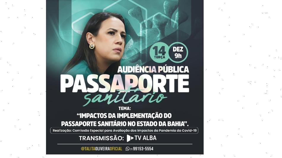 A Comissão Especial para Avaliação dos Impactos da Pandemia da Covid-19 da Assembleia Legislativa da Bahia (ALBA) realiza nesta terça-feira (14), às 9h, uma audiência pública para debater a adoção do Passaporte da Vacinação em todo o estado. A iniciativa é da deputada Talita Oliveira (PSL).