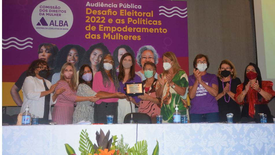 Para fechar as comemorações do Março Mulher, a Comissão dos Direitos da Mulher da Assembleia Legislativa promoveu, nesta segunda-feira (28), no Auditório Jorge Calmon, uma audiência pública intitulada Desafio Eleitoral 2022 e as Políticas de Empoderamento das Mulheres. O objetivo do debate, segundo a presidenta do colegiado, deputada Olívia Santana (PCdoB), foi mobilizar as instituições e garantir a efetivação da legislação que estabeleceu cotas de participação das mulheres nas chapas e também na distribuição do Fundo Partidário.