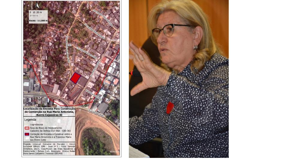 A deputada Maria del Carmen Lula (PT) protocolou, na Mesa Diretora da Assembleia Legislativa, uma indicação em que pede ao governador Rui Costa a adoção de providências junto à Secretaria Estadual de Desenvolvimento Urbano (Sedur) para construir contenção de encosta no bairro de Cajazeiras XI, entre a Rua Maria Antonieta e Travessa Maria das Dores Leite.