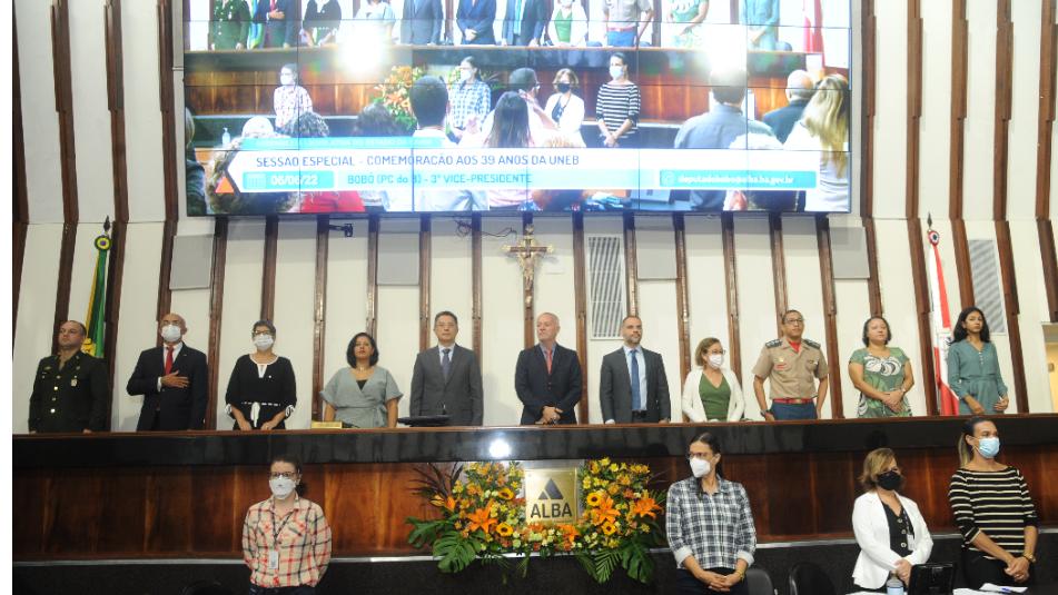 A Assembleia Legislativa realizou, nesta segunda-feira (6), uma sessão especial em comemoração aos 39 anos da Universidade do Estado da Bahia (Uneb), que é hoje a maior instituição pública de ensino superior multicampi das Regiões Norte, Nordeste e Centro-Oeste do Brasil. A grandiosidade da Uneb, seja por seus números relevantes ou pelos avanços em prol da educação popular e inclusiva, foi destacada em pronunciamentos de antigos alunos, jovens estudantes, professores, autoridades, dirigentes e parlamentares que participaram da homenagem.