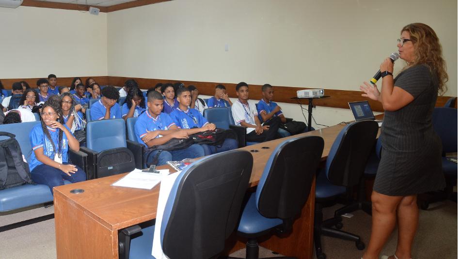 Recepcionados por uma das coordenadoras do programa, Cynthia Rabelo, os estudantes iniciaram o roteiro de visita no plenarinho, onde assistiram a palestras sobre Funções do Legislativo, com a coordenadora Laura Ramos, Estrutura Organizacional da AssembleiaLegislativa, com a instrutora Elvira Nery; e conheceramas obras de arte que compõem a decoração da Casa: omural de Carybé e o painel Galeota do Povo, de CarlosBastos, com instrutor Evandro Carvalho.