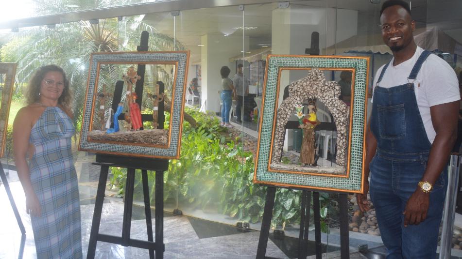 Com Exú abrindo os caminhos, Santa Dulce intercedendo pelos pobres e Oxalá fechando o ciclo da criação, a exposição “Santos e Orixás: Divindades em Papel”, do artista plástico Samuel Cruz, foi aberta nesta segunda-feira (2) no Espaço Cultural Josaphat Marinho da Assembleia Legislativa. A mostra apresenta o trabalho inovador de um motorista de carreta, de 39 anos, que viu a vida se transformar após sofrer um grave acidente, há nove anos, na rotatória da Estrada CIA/Aeroporto, em Simões Filho, comprometendo os movimentos do braço direito.