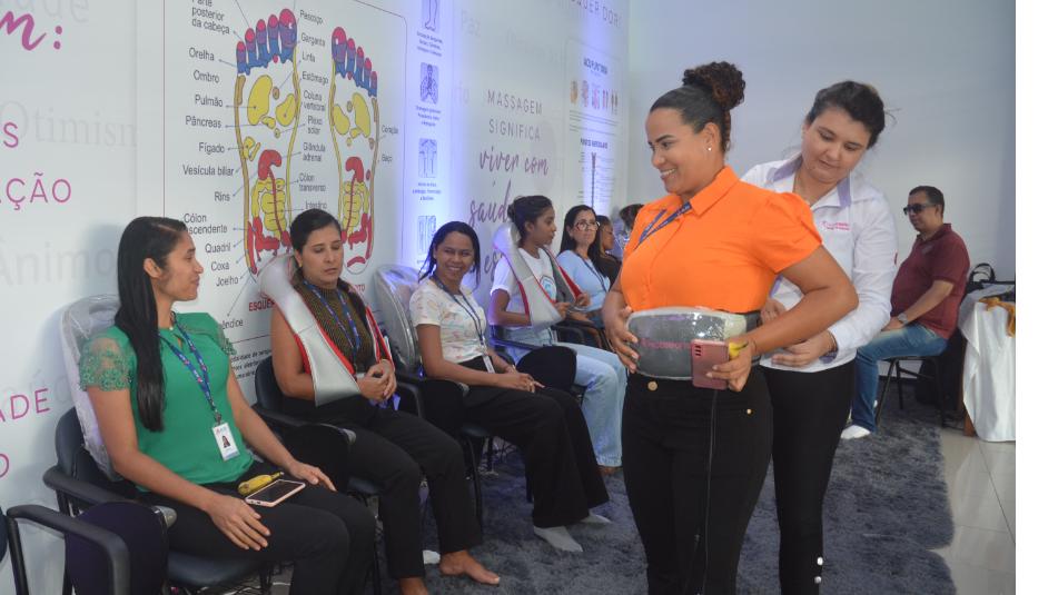 Com o intuito de proporcionar momentos de relaxamento, a Escola do Legislativo organizou um espaço para massagens, maquiagem, penteados, aferição de pressão arterial e de glicemia. Para a assessora parlamentar Aline Ferreira, o espaço foi uma excelente iniciativa da Casa, que garantiu um espaço de descanso e cuidado no meio da correria do trabalho. A servidora fez penteado e massagem.