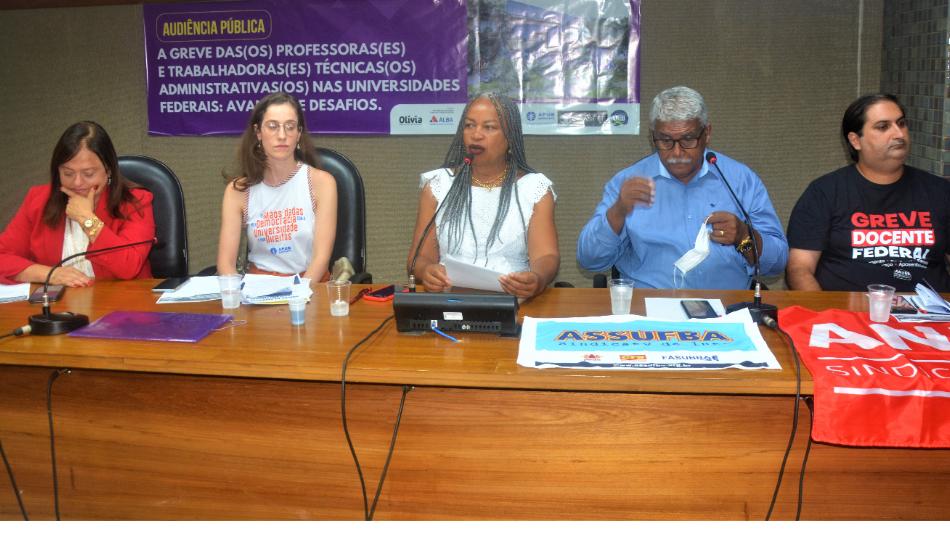 Com a presença das deputadas federais Alice Portugal (PC do B) e Lídice da Mata (PSB), o evento reuniu representantes de entidades que congregam trabalhadores docentes e técnicos administrativos de universidades, institutos e centros federais de educação, além de estudantes e apoiadores do movimento grevista.