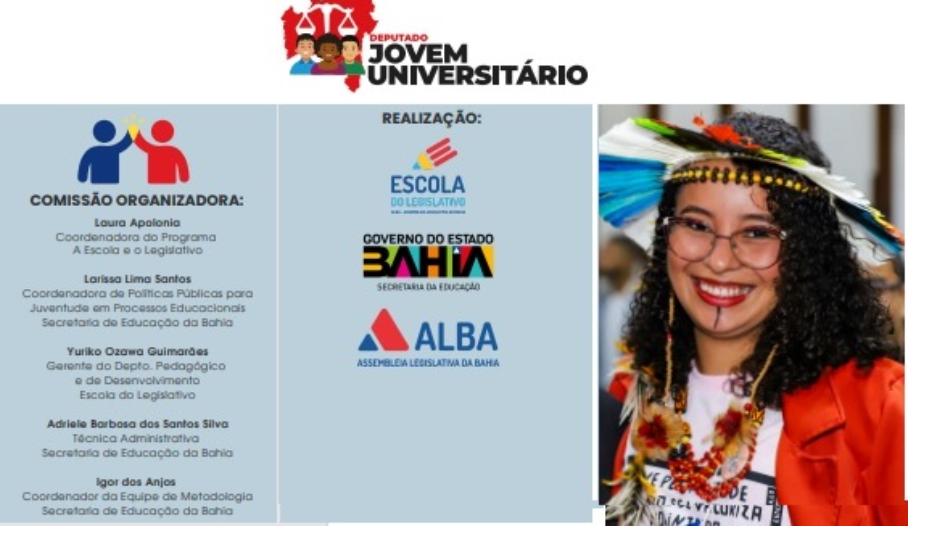 Jovens universitários comprometidos com o futuro. Esse é o lema da 1ª Edição do Deputado Jovem Universitário 2024, que terá início nesta segunda-feira (19) na Assembleia Legislativa da Bahia (ALBA) e vai até a próxima quinta-feira (22). A ação é fruto de uma parceria entre a ALBA, através da Escola do Legislativo, e o Governo do Estado, por meio da Secretaria Estadual de Educação (SEC-BA).