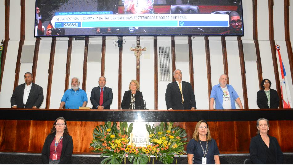 A Assembleia Legislativa da Bahia (ALBA) realizou, na manhã dessa sexta-feira (28), uma sessão especial sobre a nova Campanha da Fraternidade da Conferência Nacional dos Bispos do Brasil (CNBB), cujo tema desse ano é “Fraternidade e Ecologia Integral”, sob o lema: “Deus viu que tudo era muito bom”. A iniciativa conjunta dos deputados petistas Maria del Carmen e Marcelino Galo, que dividiram a direção dos trabalhos, reuniu, no Plenário Orlando Spinola, religiosos, representantes de movimentos populares, educadores, ambientalistas, autoridades civis, militares e eclesiásticas, para reflexões sobre a conexão da fé cristã com a responsabilidade socioambiental.
