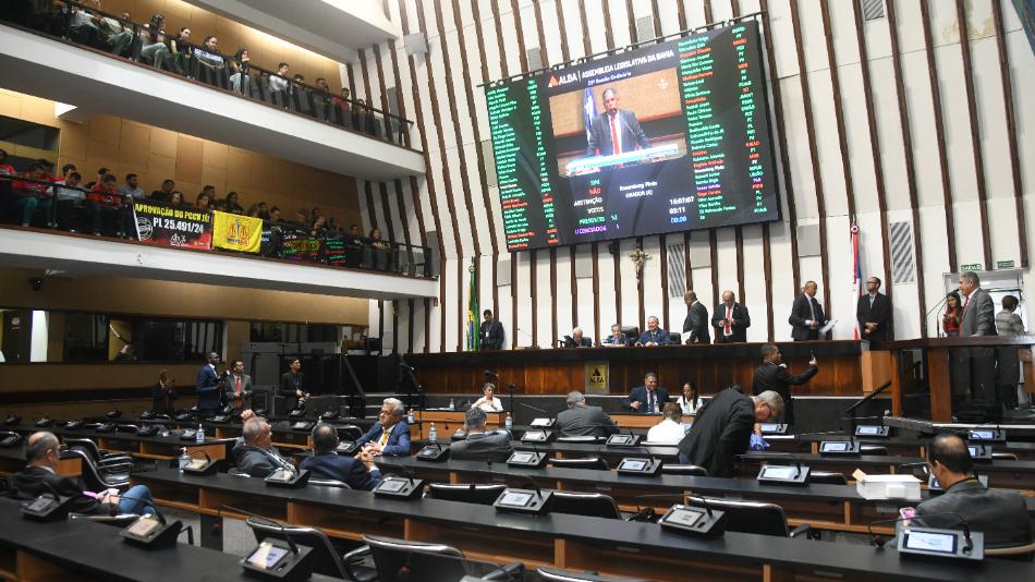 A primeira proposição a ser anunciada pela presidente Ivana Bastos foi o PL 21.707, de autoria do deputado Alex da Piatã (PSD). A matéria, que obriga a afixação de placa informando a capacidade de lotação máxima em recintos fechados, tramitava há nove anos e dispunha de parecer favorável da Comissão de Constituição e Justiça. Mas foi necessário a designação da deputada Cláudia Oliveira (PSD) para relatar um adendo em plenário, com a supressão do Art. 4º.