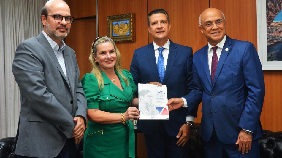 A Assembleia Legislativa da Bahia (ALBA) recebeu, na tarde dessa segunda-feira (28), cópia do relatório e parecer prévio do Tribunal de Contas do Estado (TCE) sobre as contas do Governo do Estado referentes ao exercício de 2024. A presidente do Parlamento baiano, deputada Ivana Bastos, recebeu os documentos, em mãos, do presidente da Corte de Contas, conselheiro Marcus Presidio, do corregedor do órgão, conselheiro Gildásio Penedo Filho, e do relator das contas, conselheiro Inaldo Araújo.
