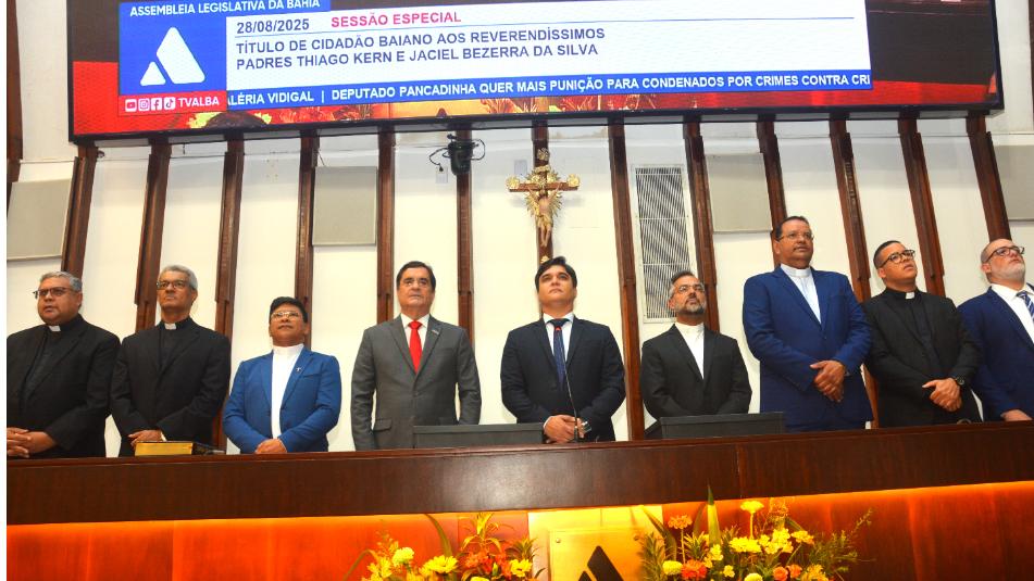 Foi a vez, então, de Tiago agradecer a Angelo pela generosidade em conceder a ele a honraria e fez questão de compartilhar a conquista com os paroquianos da comunidade do bairro do Cabula VI. “Eles sabem que esta missão não é feita sozinho, mas em comunhão. Receber o Título de Cidadão Baiano é uma honra que jamais esquecerei”, declarou. O maranhense salientou que ser chamado de baiano não é apenas um reconhecimento, mas representa “um compromisso de continuar servindo com humildade e esperança, de anunciar o Evangelho com coragem e de amar ainda mais este povo tão acolhedor”.