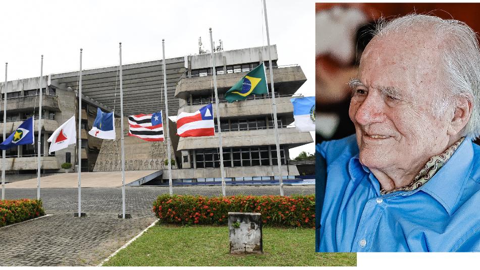 As bandeiras foram hasteadas a meio pau na Assembleia Legislativa do Estado da Bahia em atenção ao luto oficial pela morte do jornalista Mino Carta, aos 91 anos, na última terça-feira, em São Paulo. O luto de três dias foi decretado pelo presidente da República, Luiz Inácio Lula da Silva, razão pela qual todos os prédios públicos ou privados que apresentem pavilhões hasteados devem baixá-los a meio pau. A regra está disposta na Lei 5.700, que dispõe sobre símbolos nacionais.