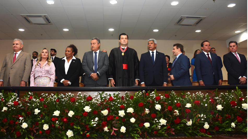 A presidente da Assembleia Legislativa, deputada Ivana Bastos, participou, na noite desta sexta-feira (27), da sessão solene de posse do procurador-geral de Justiça da Bahia, Pedro Maia. A cerimônia foi realizada na sede do Ministério Público Estadual, no Centro Administrativo. Ao lado do governador Jerônimo Rodrigues, dos ministros Rui Costa (Casa Civil), Margareth Menezes (Cultura) e Wellington Lima (Justiça e Segurança Pública), bem como de ministros de tribunais e autoridades nacionais e estaduais, a chefe do Legislativo baiano integrou a prestigiada mesa de honra da solenidade, que reconduziu o promotor de justiça Pedro Maia para o comando da instituição pública durante o biênio 2026/2028.