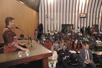 O bate-boca na reunião do pleno do STF entre o presidente Gilmar Mendes e o ministro Joaquim Barbosa permeou toda a sessão especial de ontem, na Assembleia Legislativa, realizada para discutir o Projeto de Lei 14.695/05, que institui o Estatuto de Promoção da Igualdade Racial e Combate à Intolerância Religiosa. Vários foram os pronunciamentos de apoio e desagravo a Barbosa, durante o evento proposto pela deputada Fátima Nunes (PT), que reuniu diversas representações do segmento negro.
