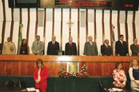 A Assembleia Legislativa realizou ontem sessão especial para comemorar os 32 anos de existência da Igreja Universal do Reino de Deus (Iurd). O evento, proposto pelos deputados Eliedson Ferreira (DEM) e Ivo de Assis (PR), reuniu grandes expressões daquela denominação religiosa e toda a sua representação política no estado: o deputado federal Bispo Marinho (PR), os vereadores de Salvador Sildevan Nobrega (PRB), Eron Vasconcelos (DEM) e Isnard Vasconcelos (PR) e o de Feira de Santana, José de Arimatéia (PRB).