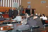 Antes de começar a apreciar o Orçamento, Waldenor apresentou requerimento de urgência ao Projeto 18.462/09, do Poder Executivo, que estabelece o reajuste médio de 4% para o funcionalismo, a partir de 1o de janeiro. A proposição foi aprovada por 32 votos a favor e 20 contrários. Logo em seguida, o líder apresentou outro requerimento, pedindo a prorrogação da sessão por 2 mil minutos, ou 33 horas. O deputado Paulo Azi, no entanto, alertou que a prorrogação não poderia atropelar o horário da sessão ordinária da manhã de hoje. Por conta disso, novo requerimento foi apresentado, desta vez de prorrogação de 660 minutos.