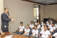 Na última terça-feira, os alunos da 5a série do Colégio Estadual Rafael Oliveira, no bairro de Cajazeiras, iniciaram o programa, assistindo com olhos bastante atentos e curiosos à palestra do Dr. Maurício Sampaio sobre a importância do Poder Judiciário.