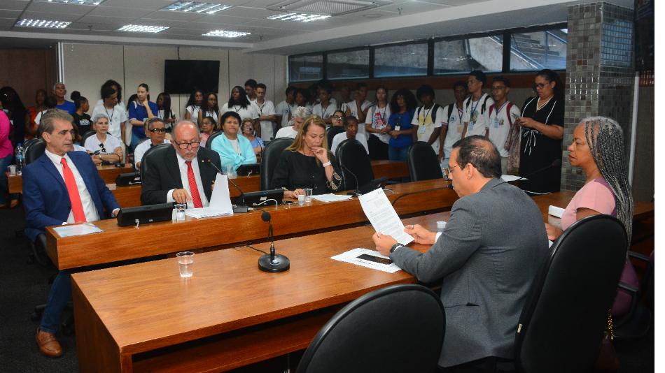 A manhã desta terça-feira (8) foi marcada por uma intensa reunião da Comissão de Educação, Cultura, Ciência e Tecnologia e Serviço Público da Assembleia Legislativa da Bahia, com a participação ativa das deputadas Olívia Santana (PC do B), Fabíola Mansur (PSB), Hilton Coelho (Psol), Robinson Almeida (PT), Felipe Duarte (PP), ...