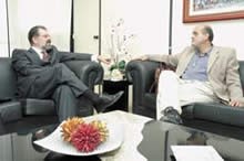 O presidente da Assembléia Legislativa, Marcelo Nilo (PSDB), recebeu hoje a visita do presidente da Associação dos Magistrados da Bahia (Amab), Rolemberg Costa. Segundo Costa, o encontro teve um caráter de cortesia e também de reiterar os laços entre os poderes Legislativo e Judiciário. Participaram também da reunião, os deputados ...