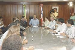 Após o encerramento dos trabalhos, o governador Paulo Souto recebeu cumprimentos no plenário durante meia hora e foi acompanhado até o carro na rampa de acesso ao Palácio Deputado Luís Eduardo Magalhães pelo presidente da Casa, os demais integrantes da Mesa Diretora, líderes partidários e pelos parlamentares que integram sua ...