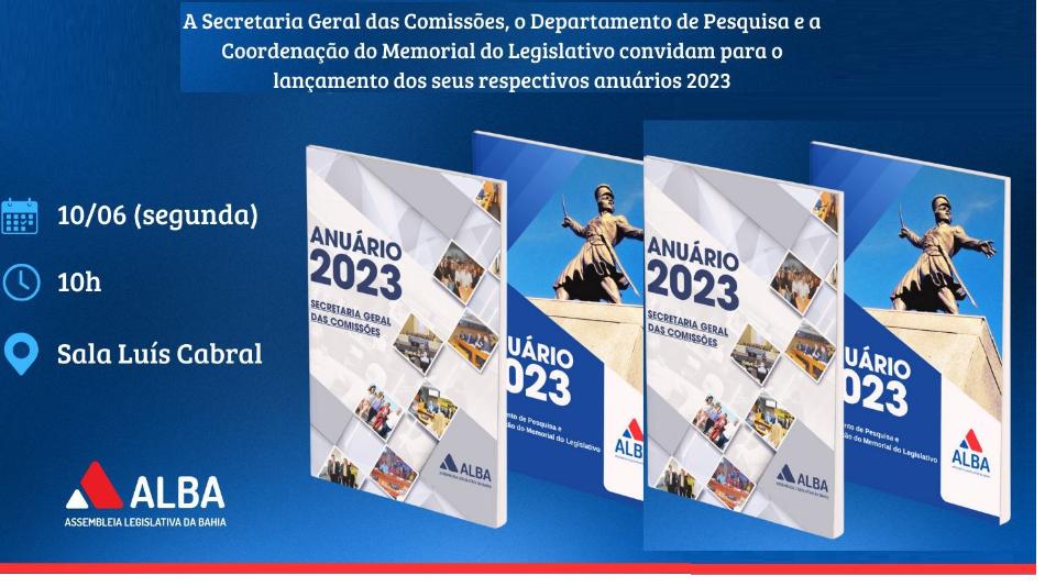 A Secretaria-Geral das Comissões, o Departamento de Pesquisa e a Coordenação do Memorial da Assembleia Legislativa da Bahia (ALBA) lançarão seus respectivos anuários referentes ao ano de 2023 na próxima segunda-feira (10), a partir das 10h. Esses documentos visam aumentar a transparência das atividades parlamentares e preservar a memória institucional ...
