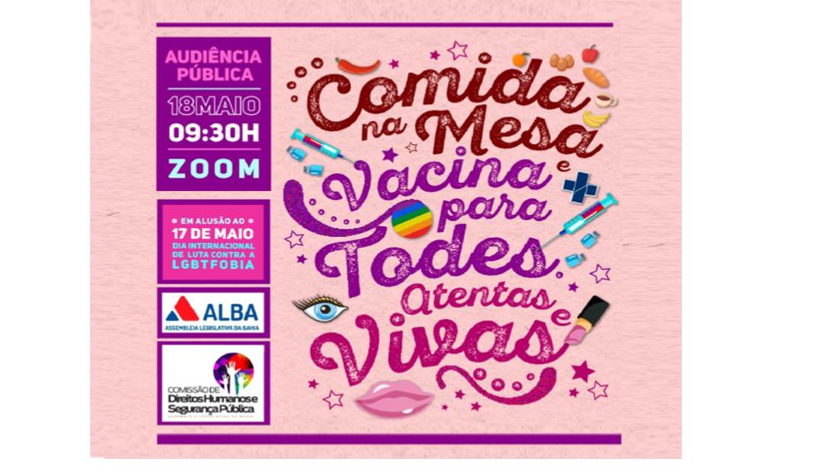 “Comida na mesa, vacina para todes, atentas e vivas!”. Este é o tema da audiência pública em formato de ocupação que a Assembleia Legislativa da Bahia realiza nesta terça-feira (18), às 9h30, para marcar o Dia Internacional de Combate à LGBTfobia. A proposta, sugerida pelo deputado estadual Jacó (PT) e ...